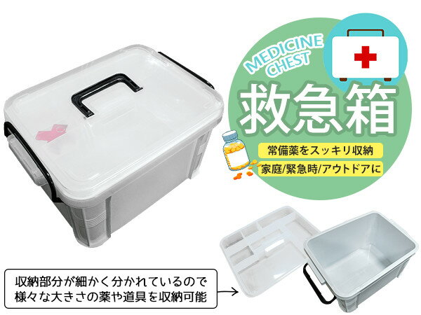 常備薬の収納や保管に最適! 救急箱 仕切り付き 救急ボックス プラスチック製 コンパクトサイズ 【救急BOX 防災 災害 薬入れ 収納ケース 家庭用常備薬 応急手当 風邪薬 絆創膏】