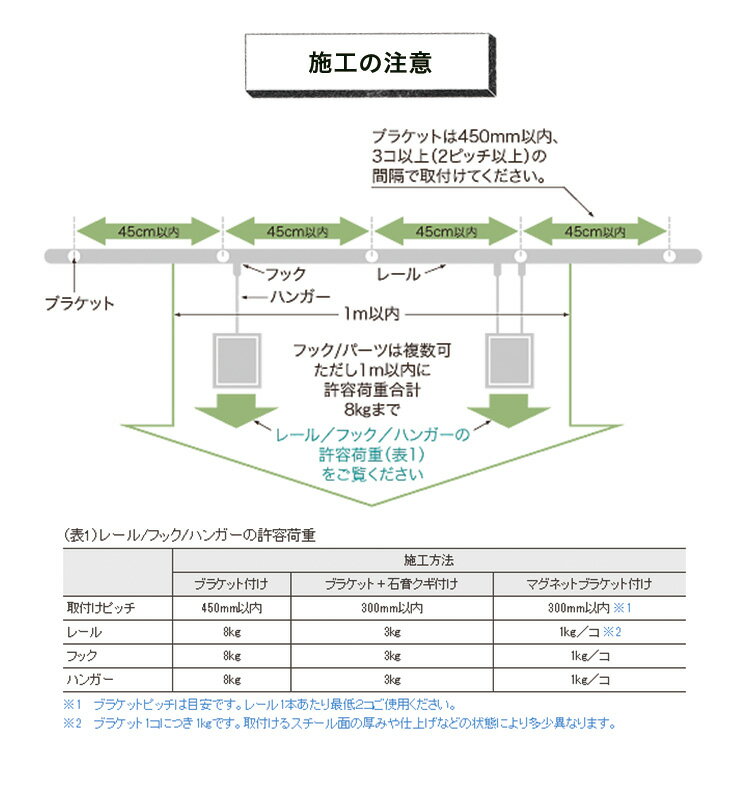商品の詳細 ご注意 取付間隔と許容荷重をお守りください。